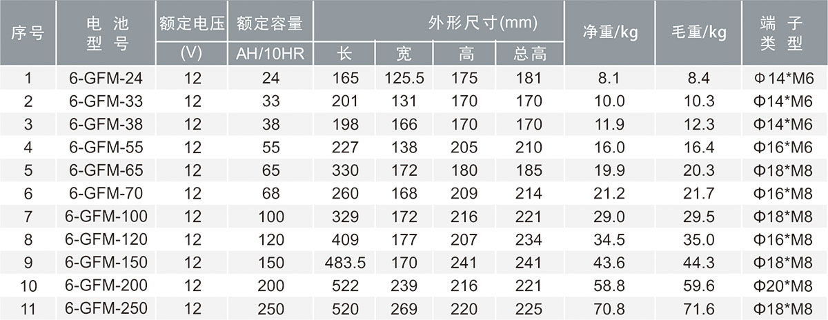 產(chǎn)品系列:容量范圍:33AH-250AH 電壓等級:12v